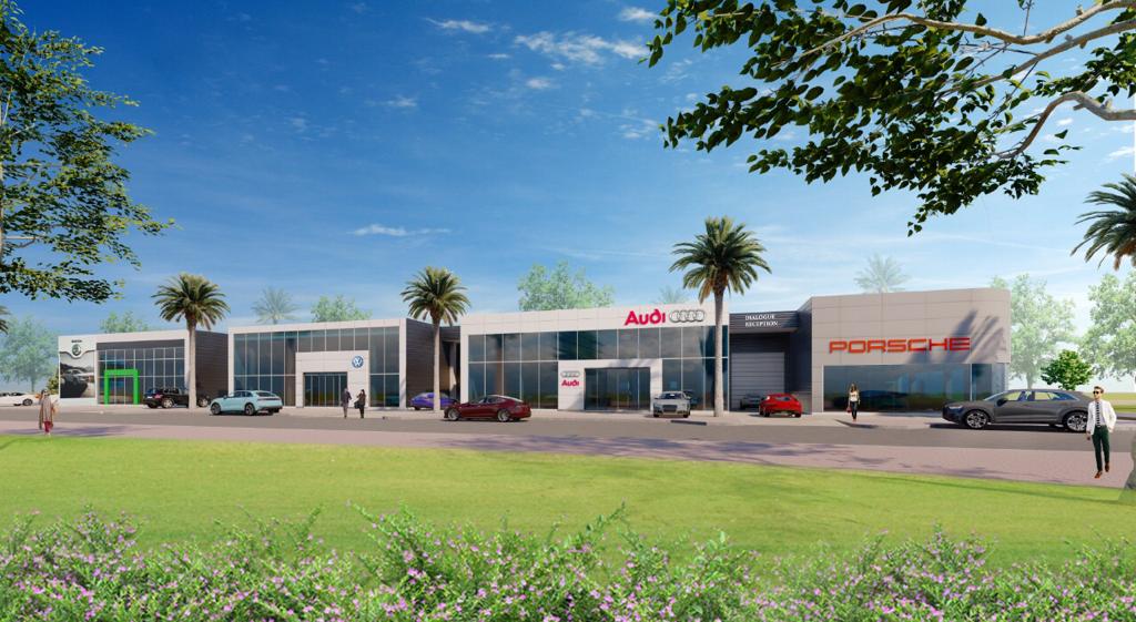Construction d’un village auto (showroom Porsche, Audi, Volkswagen, Skoda)